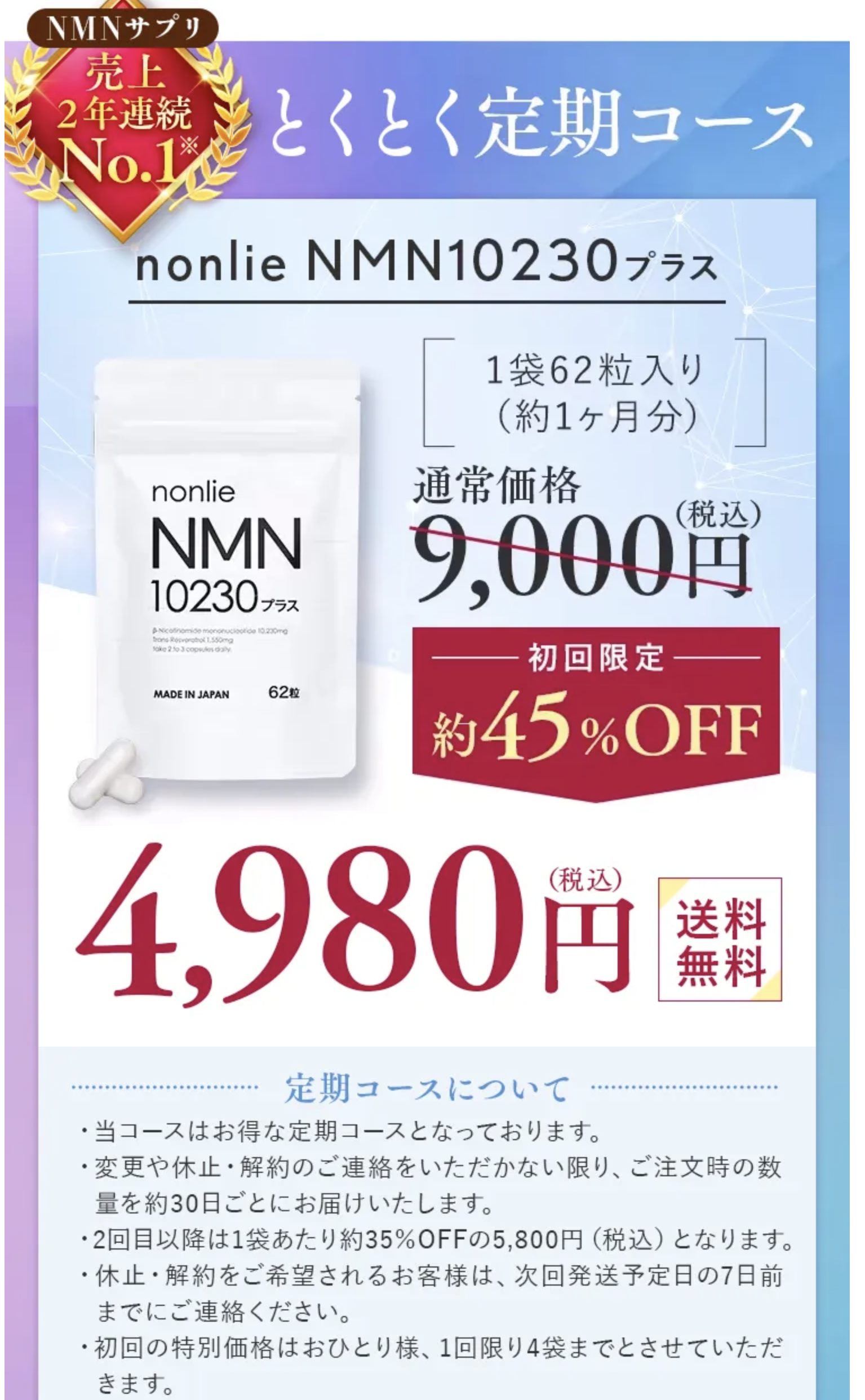 僕が愛用しているのは「nonlieNMN 10230 プラス」です。